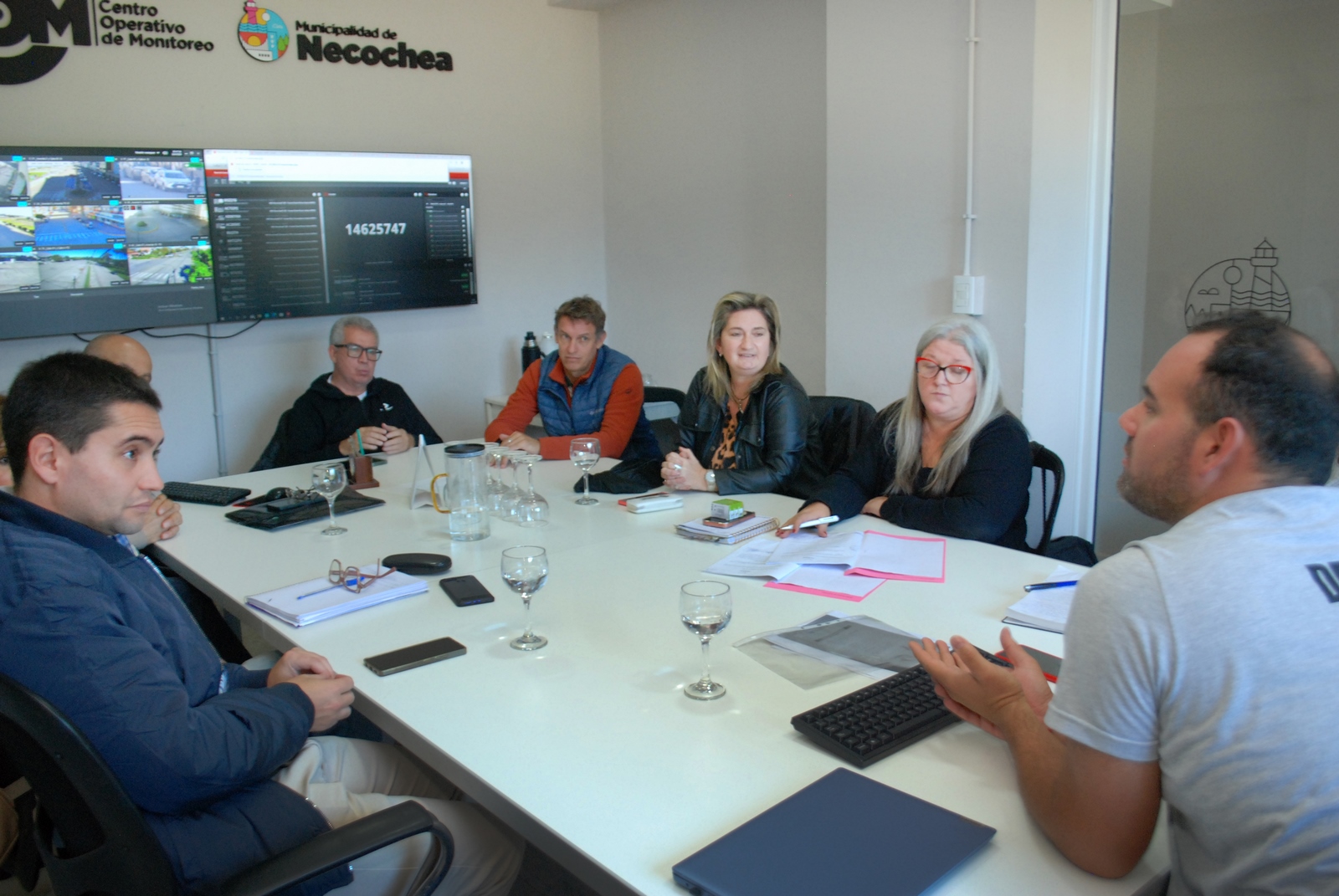 La Comisión se desarrolló en el Centro Operativo de Monitoreo (COM) donde los concejales fueron recibidos por Augusto Fulton (Director General de Defensa Civil).